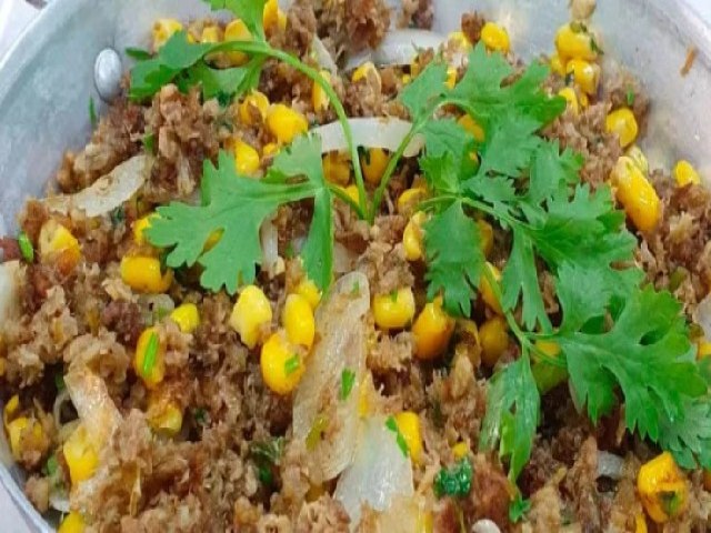 Desligue o processador, transfira a carne de sol desfiada para uma frigideira em fogo alto e adicione 300 gramas de cebola cortada em tiras, 300 gramas de milho em lata e refogue por mais ou menos 5 minutos.