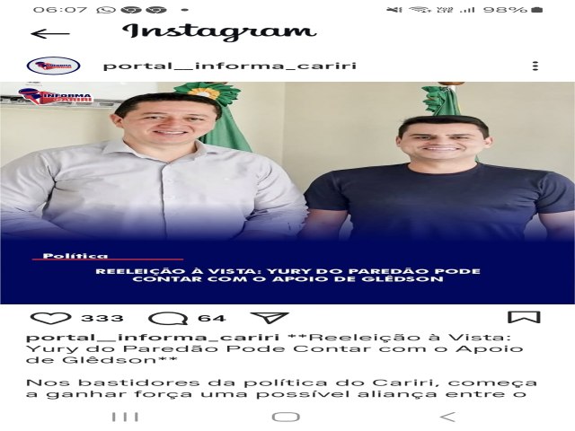Segundo a mentira publicada, ganha força, nos bastidores, a possibilidade de prefeito juazeirense apoiar Yury nas eleições do ano vindouro. É algo tão desarrazoado que não deveria sequer ser motivo de especulações e, muito menos, de contrariedades.